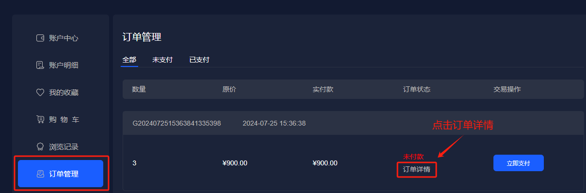 第二步:从”订单管理“进入后,选择需修改尺寸的礼物订单,点击“订单详情”