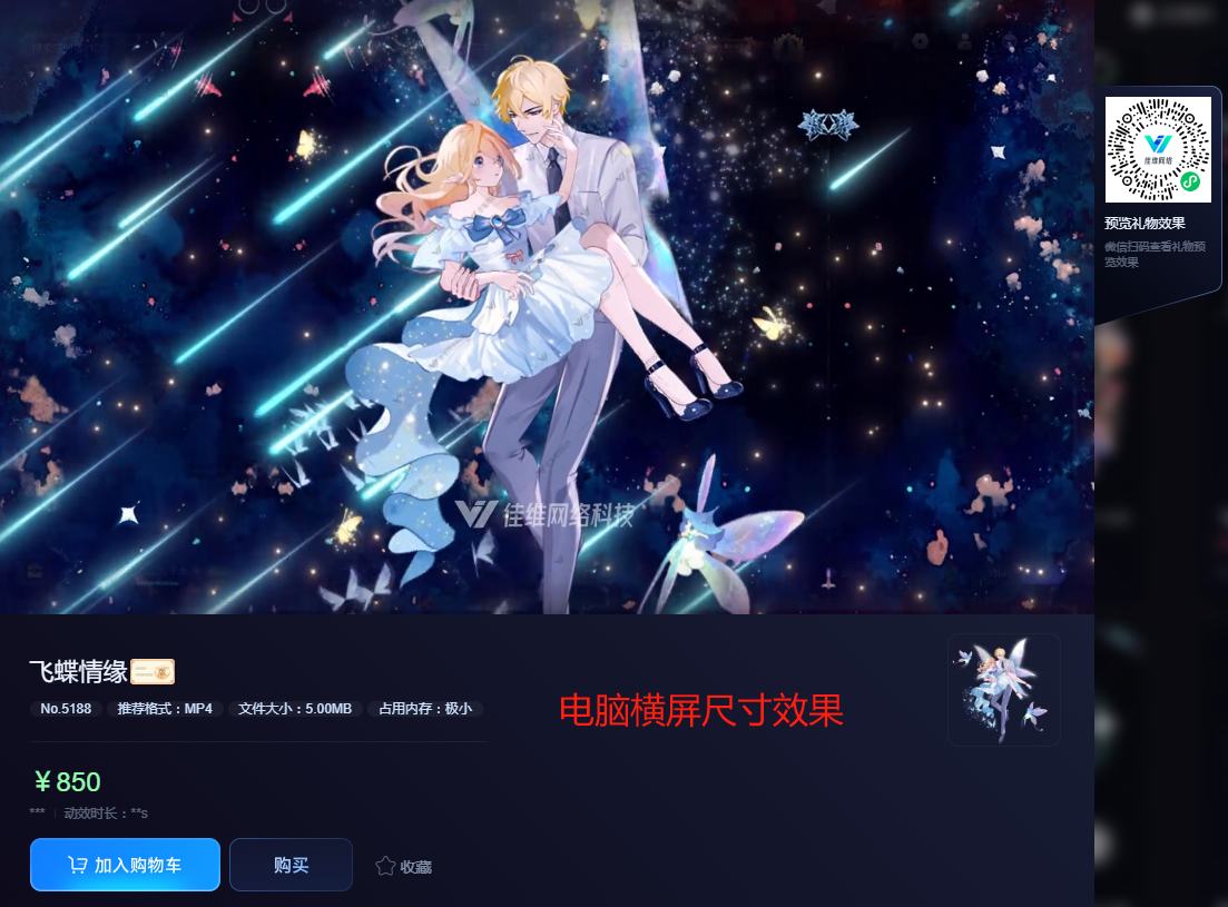 除了手机竖屏尺寸,佳维还推出专为PC端设计的横屏尺寸特效,满足不同直播场景下的礼物需求,为用户采买提供更多元化的选择,同时为PC端用户带来了更丰富和沉浸式的互动体验。